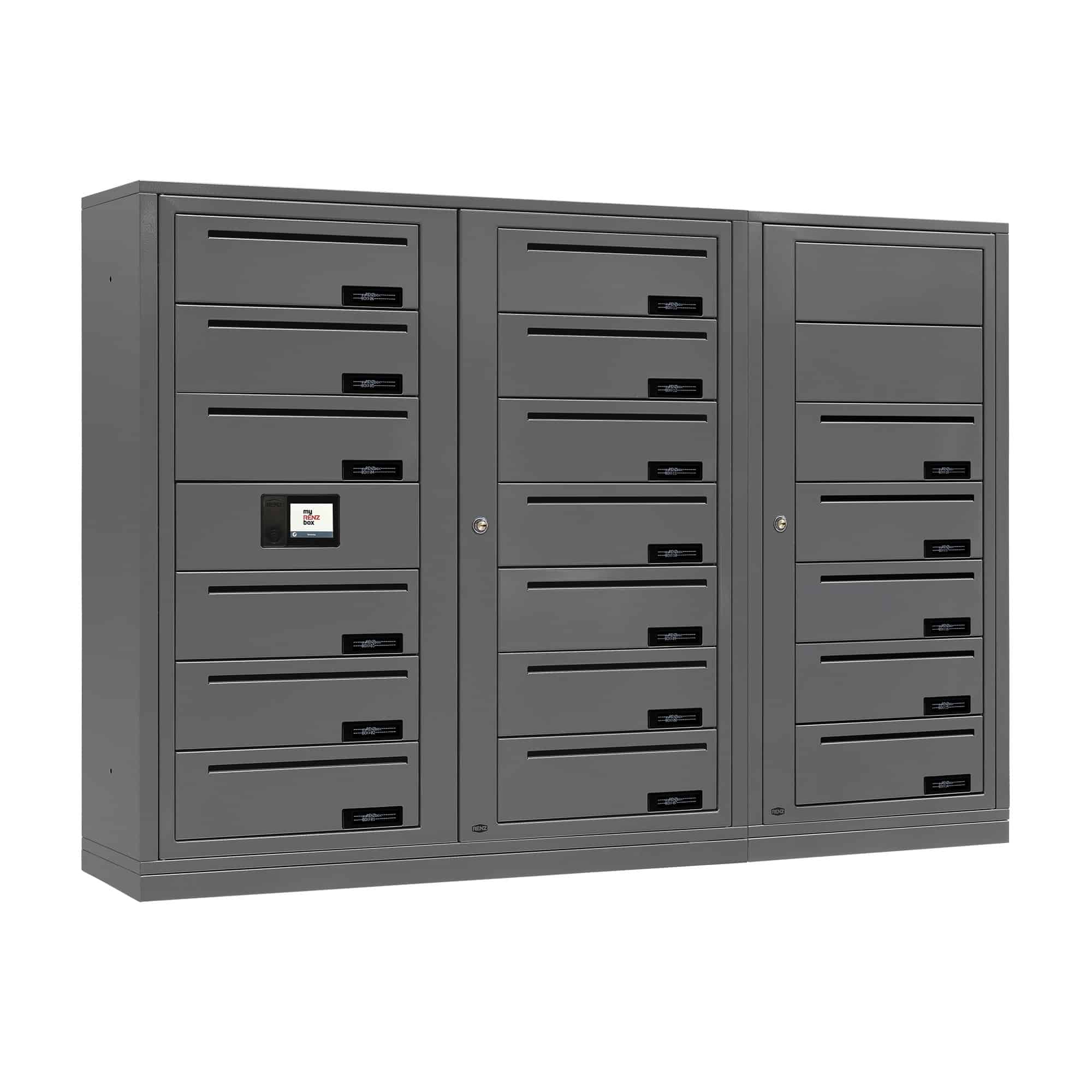 Smidiga fastighetsboxar från RENZ. Postboxarna är utrustade med ellåsning, självöppnande luckor och inbyggd namndisplay. All programmering sker via mjukvaran i VAKA® och uppdateras direkt i systemet. Skräddarsys efter behov och kan beställas i valfri färg. |