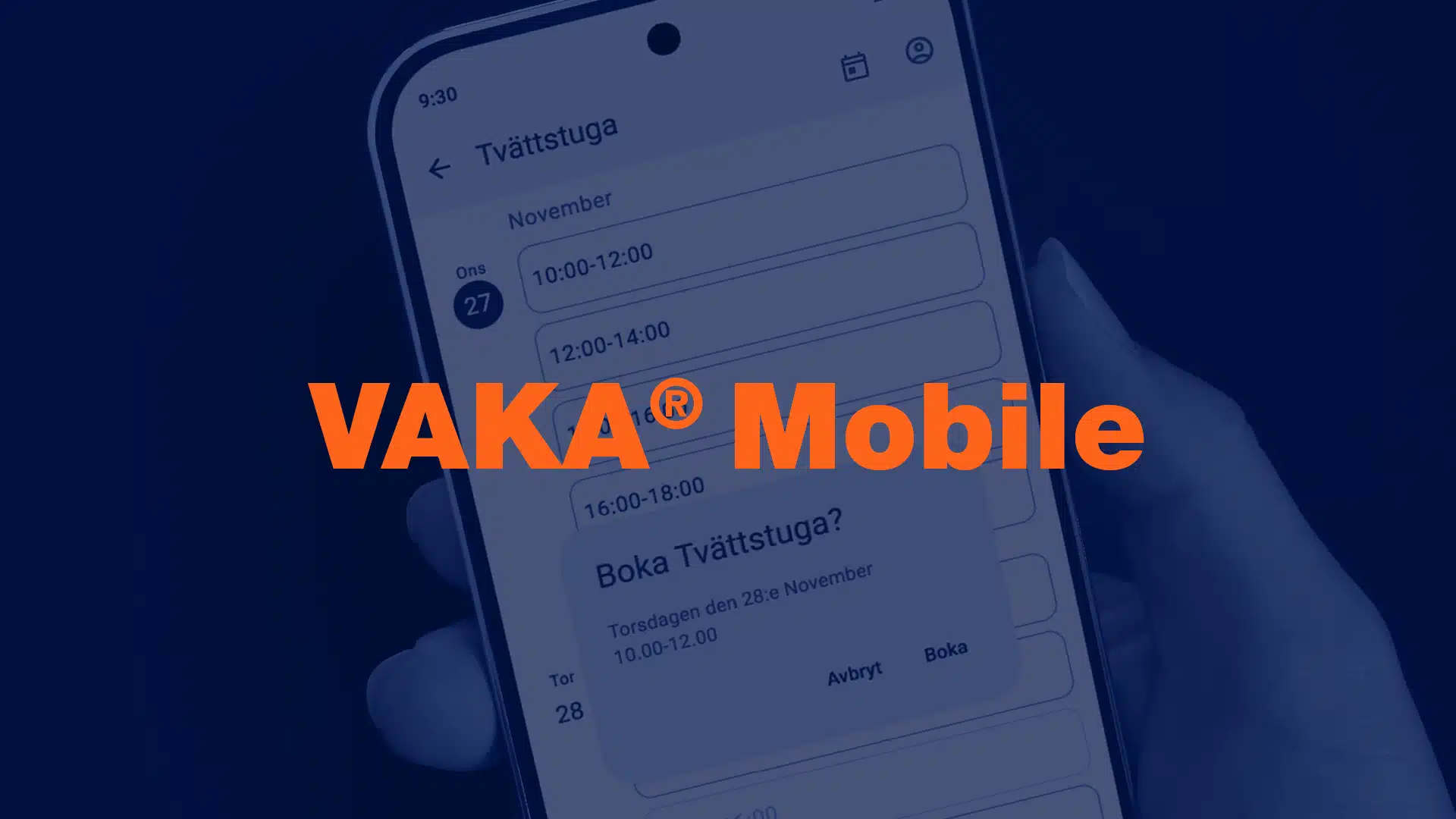 Nu lanserar vi VAKA® Mobile – en ny, användarvänlig app för enkel tidsbokning av gemensamma utrymmen i fastigheten. Med appen kan boende boka lokaler som tvättstuga, övernattningslägenhet och festlokal direkt i mobilen, oavsett var de befinner sig.