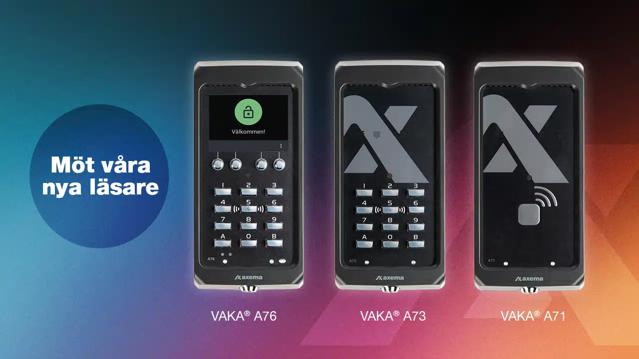 Nu tar vi på Axema ytterligare ett steg framåt i utvecklingen av smarta lösningar för säkra och användarvänliga passersystem. Våra nya läsare VAKA® A76, A73 och A71 är en perfekt kombination av snygg design, hög säkerhet och stor flexibilitet.